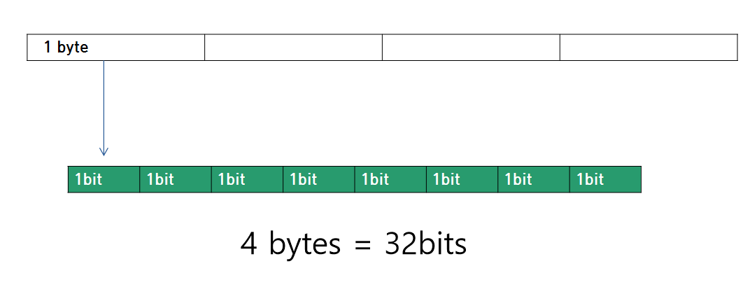 이다. 그래서 32개의 비트 공간으로 표현 할 수 있는 숫자의 최대 값은 2의32승 -1이다.